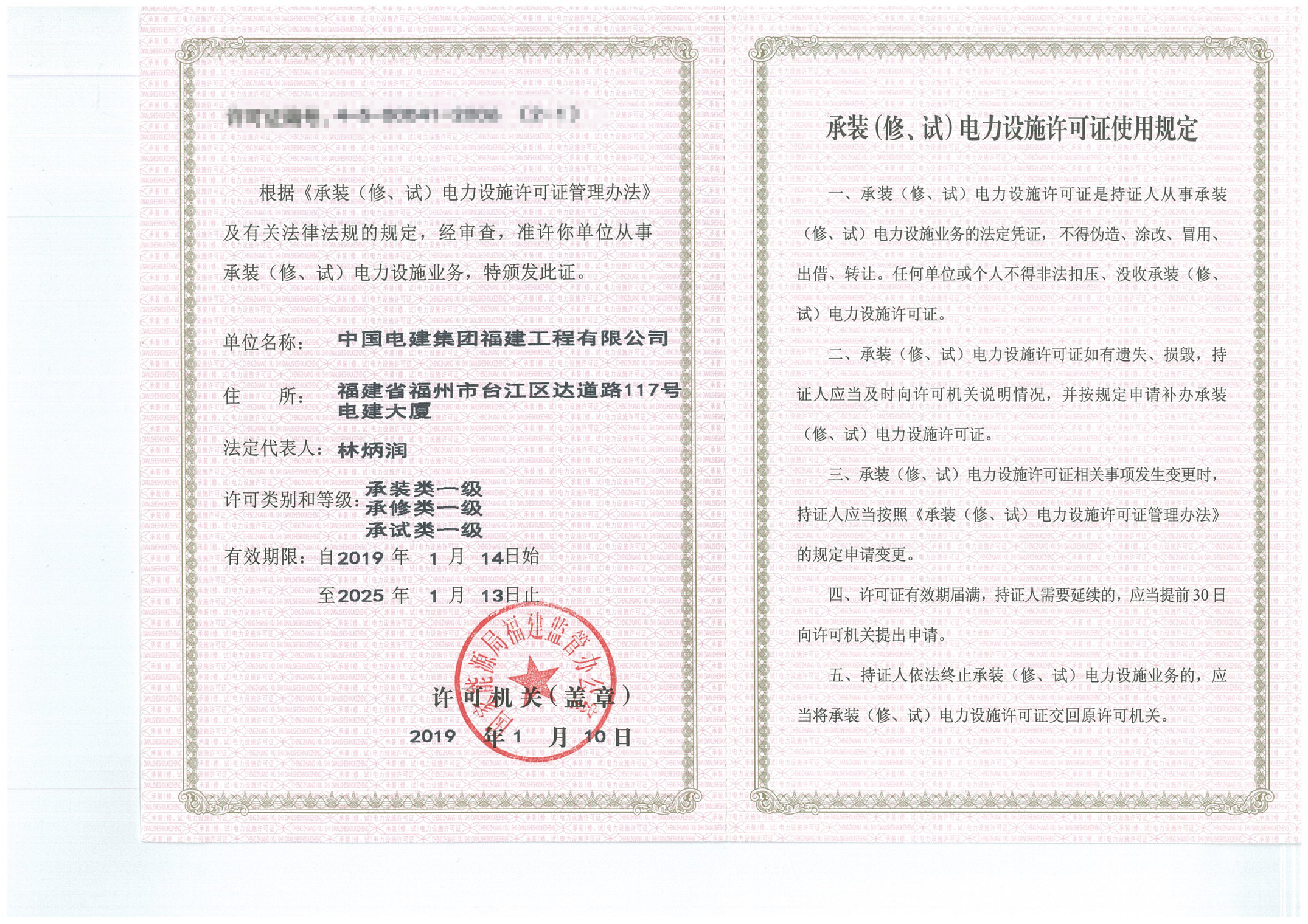 承装(修、试)电力设施许...